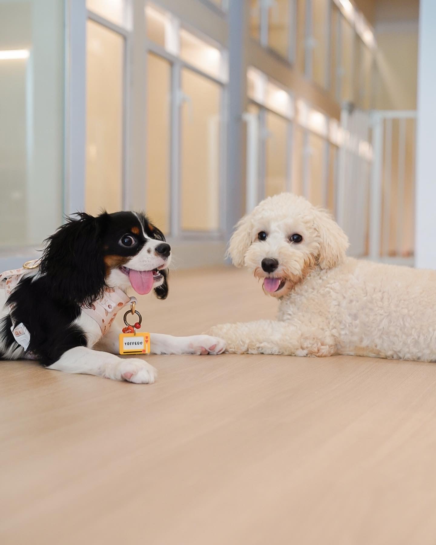 They've had their fill of play, treats, and maybe a bit of mischief. Now it’s finally time for a good night’s rest before yet another day of fun!
